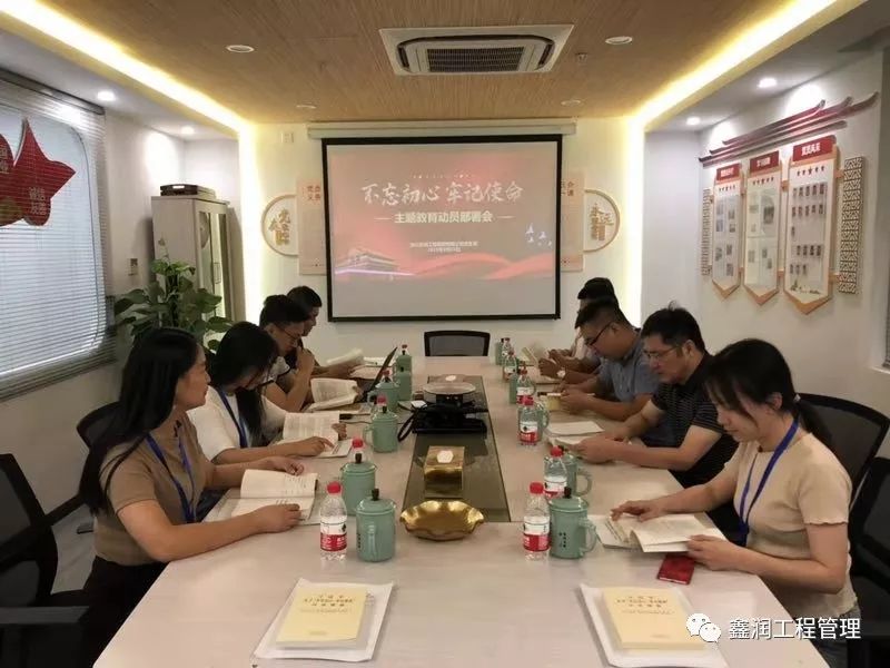 為貫徹落實彭埠街道商會黨總支“不忘初心、牢記使命”主題教育的安排部署,2019年9月15日下午,浙江鑫潤工程管理有限公司黨支部組織召開了“不忘初心、牢記使命”主題教育動員大會,全面啟動相關工作。